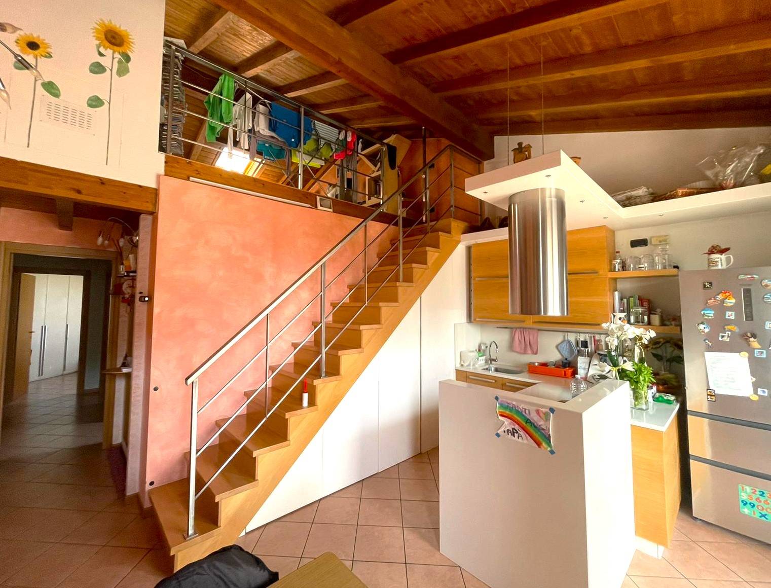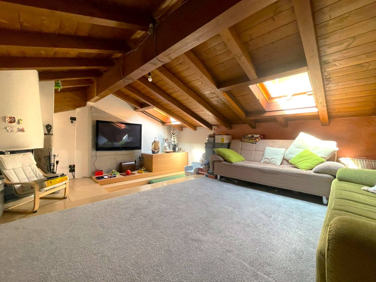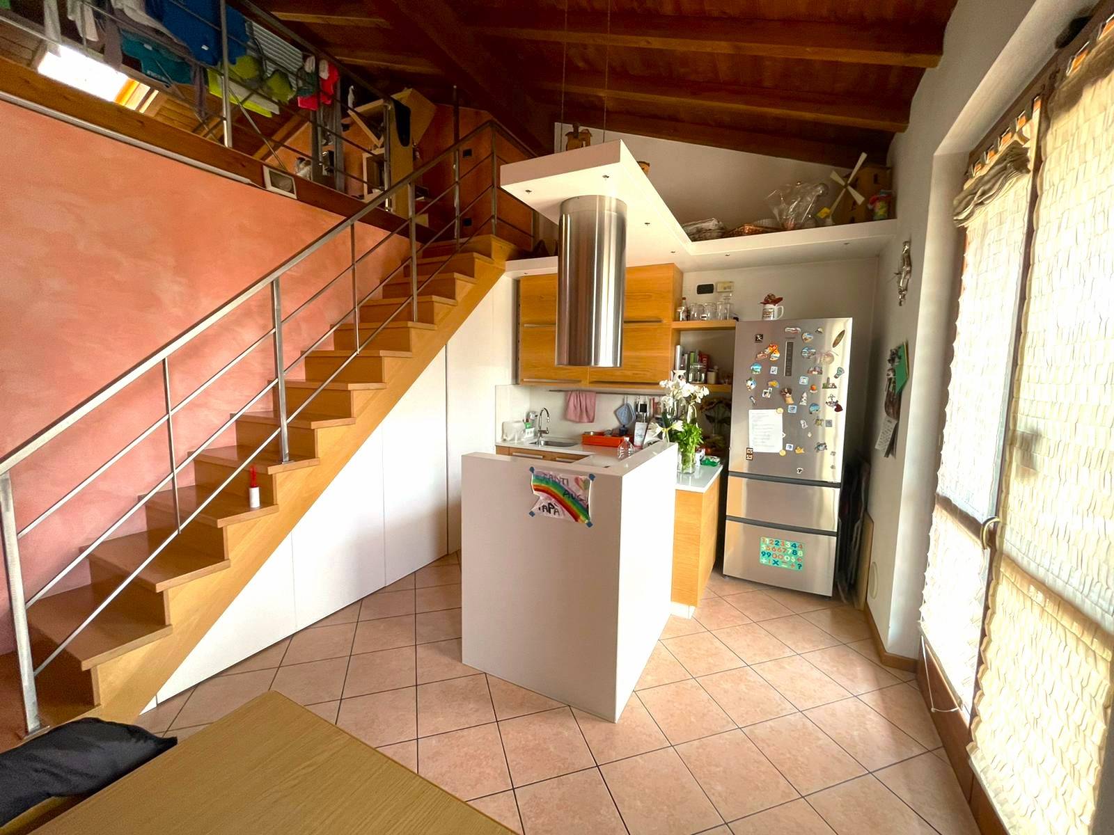 In zona tranquilla, Studio Casa Osio Sotto Vi propone in vendita recente trilocale posto al primo con ingresso indipendente. Inserito in contesto elegante e signorile l'appartamento si compone di ingresso, cucina open space ampia e luminosa con accesso sul balcone, ampio soggiorno soppalcato, disimpegno, bagno e due camere da letto. Unico nel suo genere, finiture di pregio come travi a vista, infissi doppio-vetro legno, riscaldamento autonomo. Al piano interrato completa la proprietà il box doppio. Possibilità arredo!