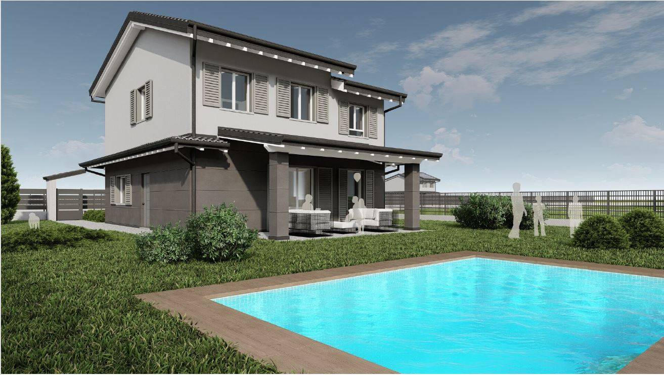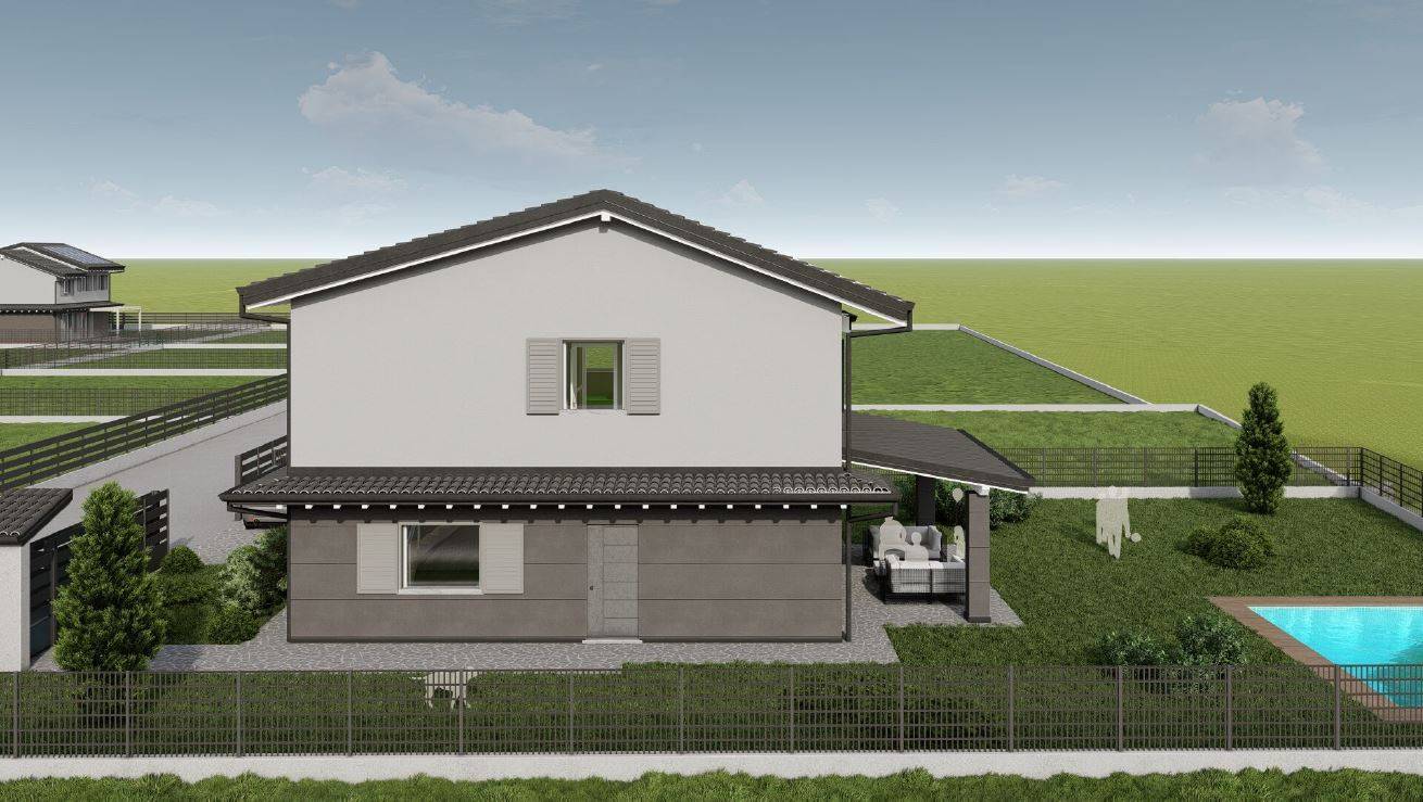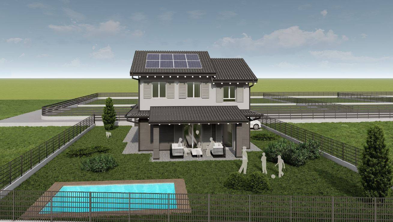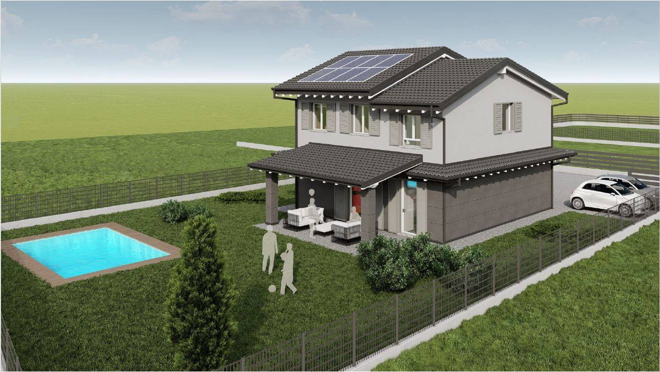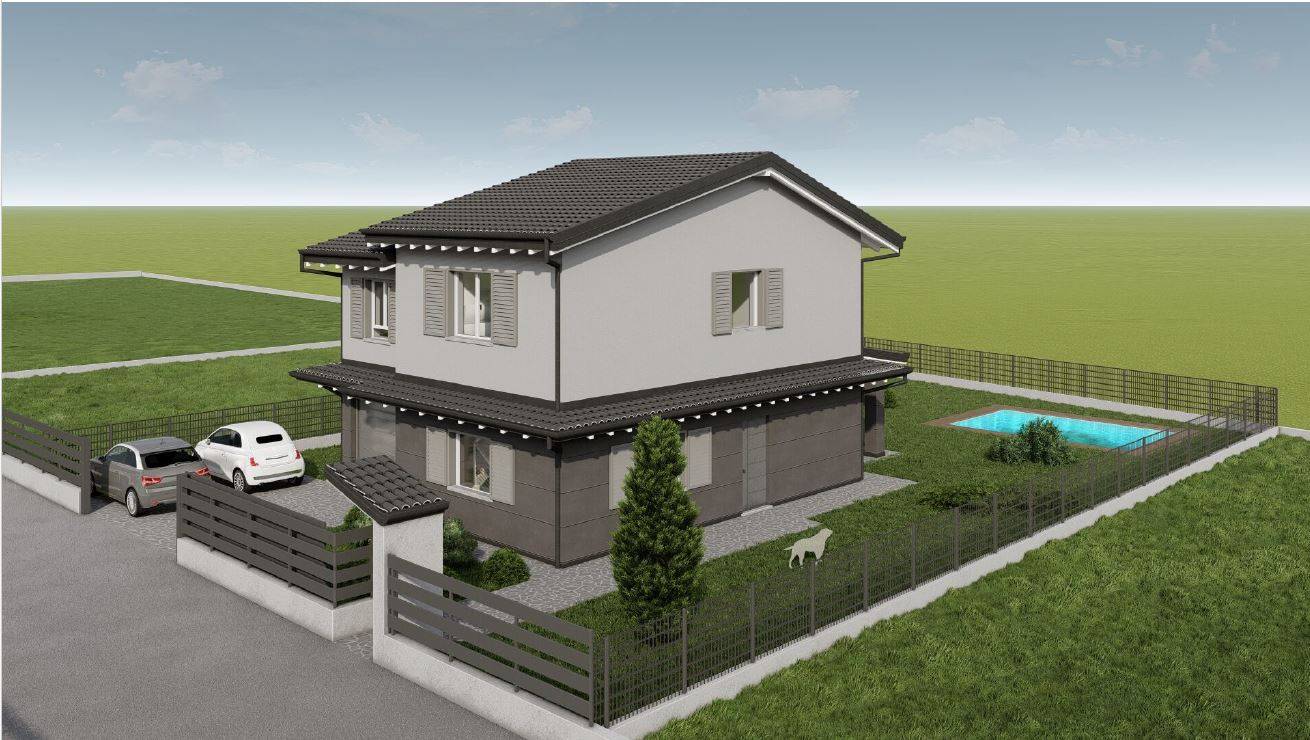 NUOVISSIMA VILLA INDIPENDENTE - CON AMPIO GIARDINO E QUATTRO CAMERE DA LETTO !!!! Proponiamo in vendita VILLA SINGOLA di generose metrature, circondata da GIARDINO PRIVATO di 490 mq con ampio porticato!!! Disposta su due livelli, composta al piano terra da ingresso indipendente direttamente sull'ampia zona giorno open space di 47 mq con uscita all'ampio porticato e giardino, disimpegno, lavanderia e un primo bagno con lavanderia. Sempre al piano terra una autorimessa singola con accesso diretto all'abitazione e ulteriori due posti auto.