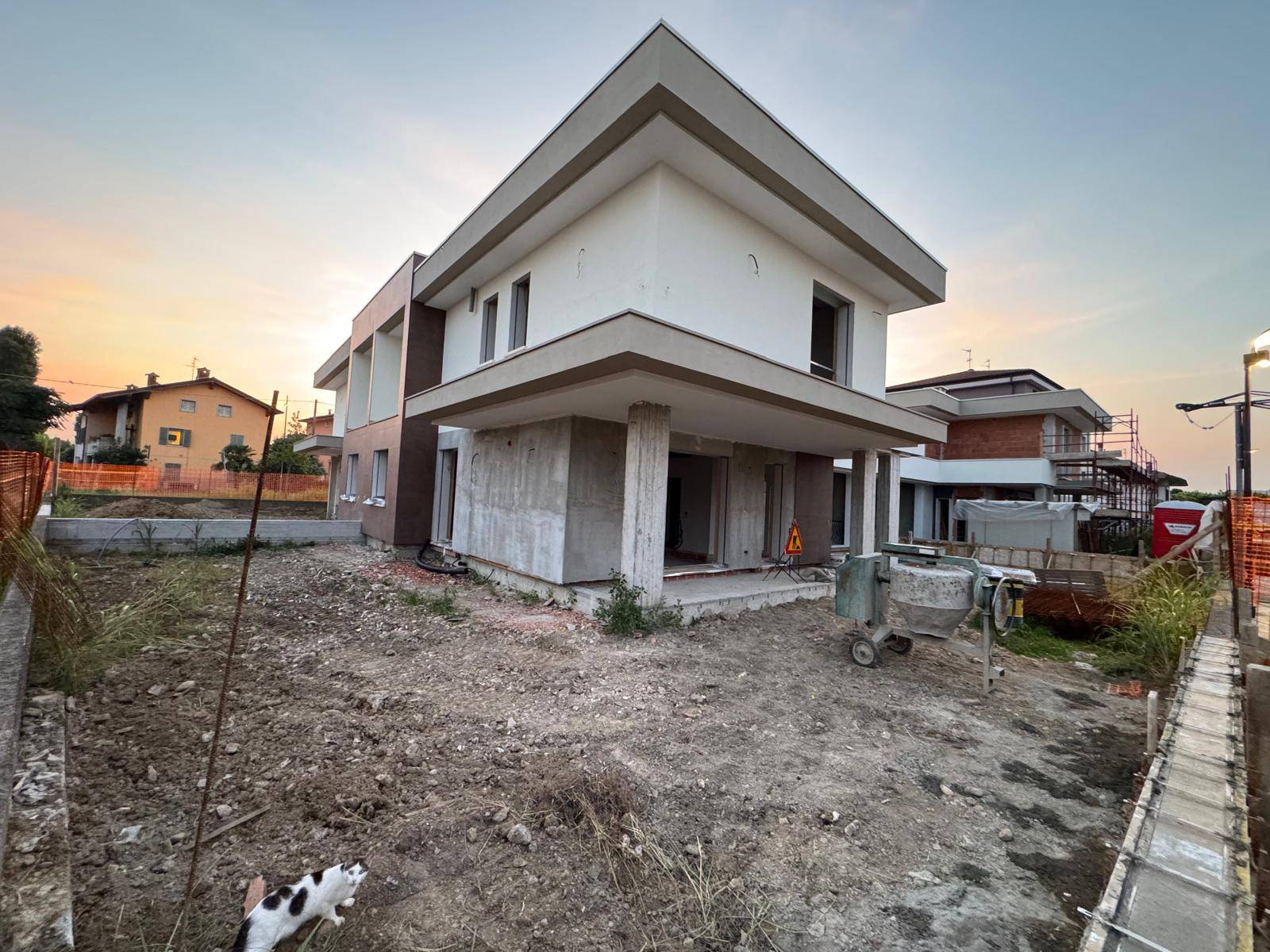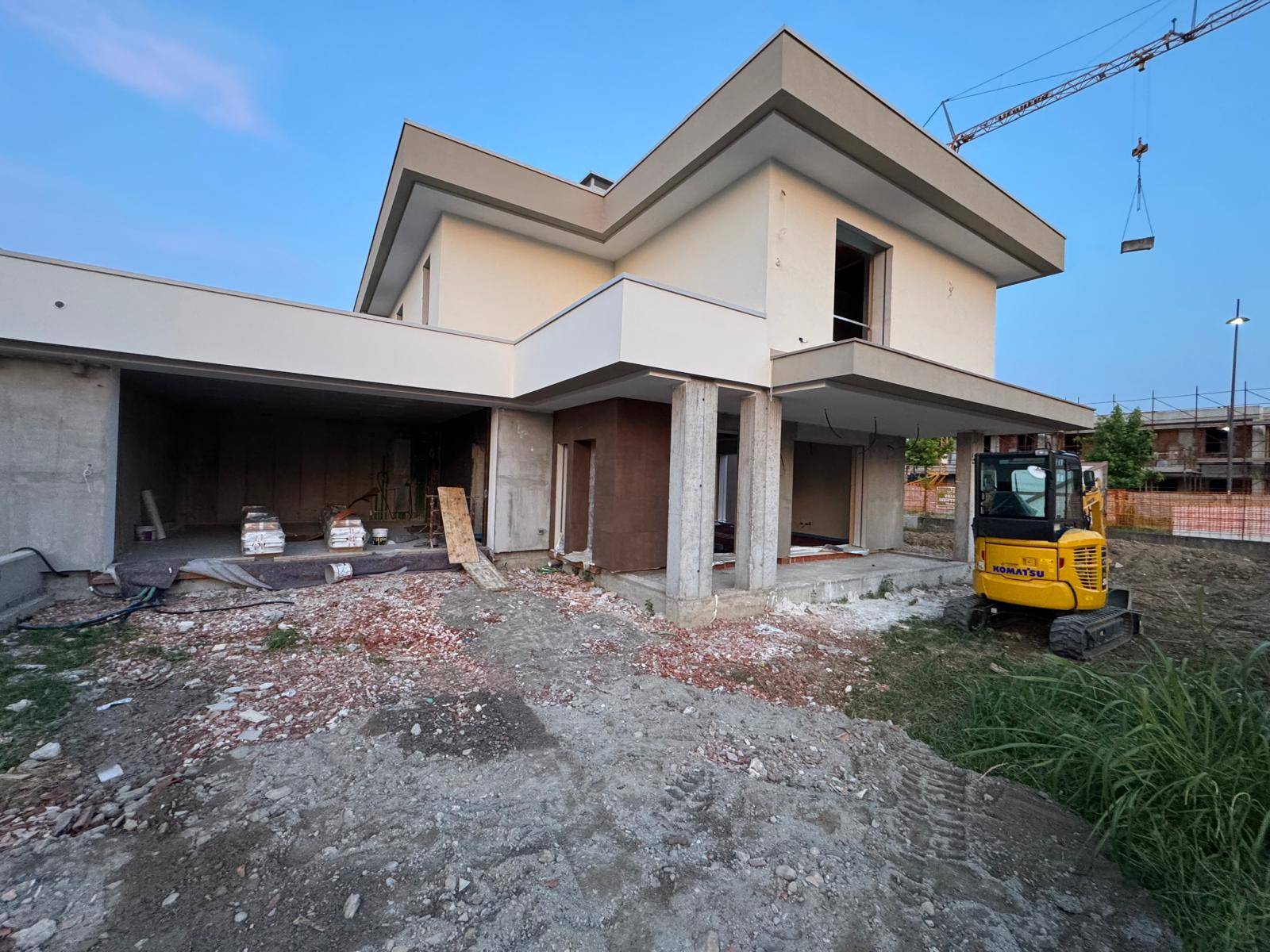 Villa Bifamigliare classe A4 di nuova realizzazione, disposta su due piani, completamente indipendente con giardino di ben 385 mq, Si accede dal cancello pedonale sul cortile che da porta blindata porta ad un ampio disimpegno, soggiorno/pranzo di ampie dimensioni con cucina abitabile e una comoda dispensa, un bagno/lavanderia collegato alla autorimessa di ben 42mq. Tramite scala interna si arriva a piano primo con due camere da letto matrimoniali, e una camera singola , tutte con spaziosa cabina armadio; al piano superiore ci sono ben due bagni di cui uno con doccia e l'altro con vasca da bagno. Il capitolato comprende sanitari sospesi, isolamenti con cappotto, serramenti con triplo vetro, impianto di riscaldamento / raffrescamento termoautonomo con pannelli radianti a pavimento, sistema di ricambio aria /deumidificazione canalizzato. Generatore a pompa di calore con pannelli solari da 7/8 kwp con possibilità di ampliamento potenza.