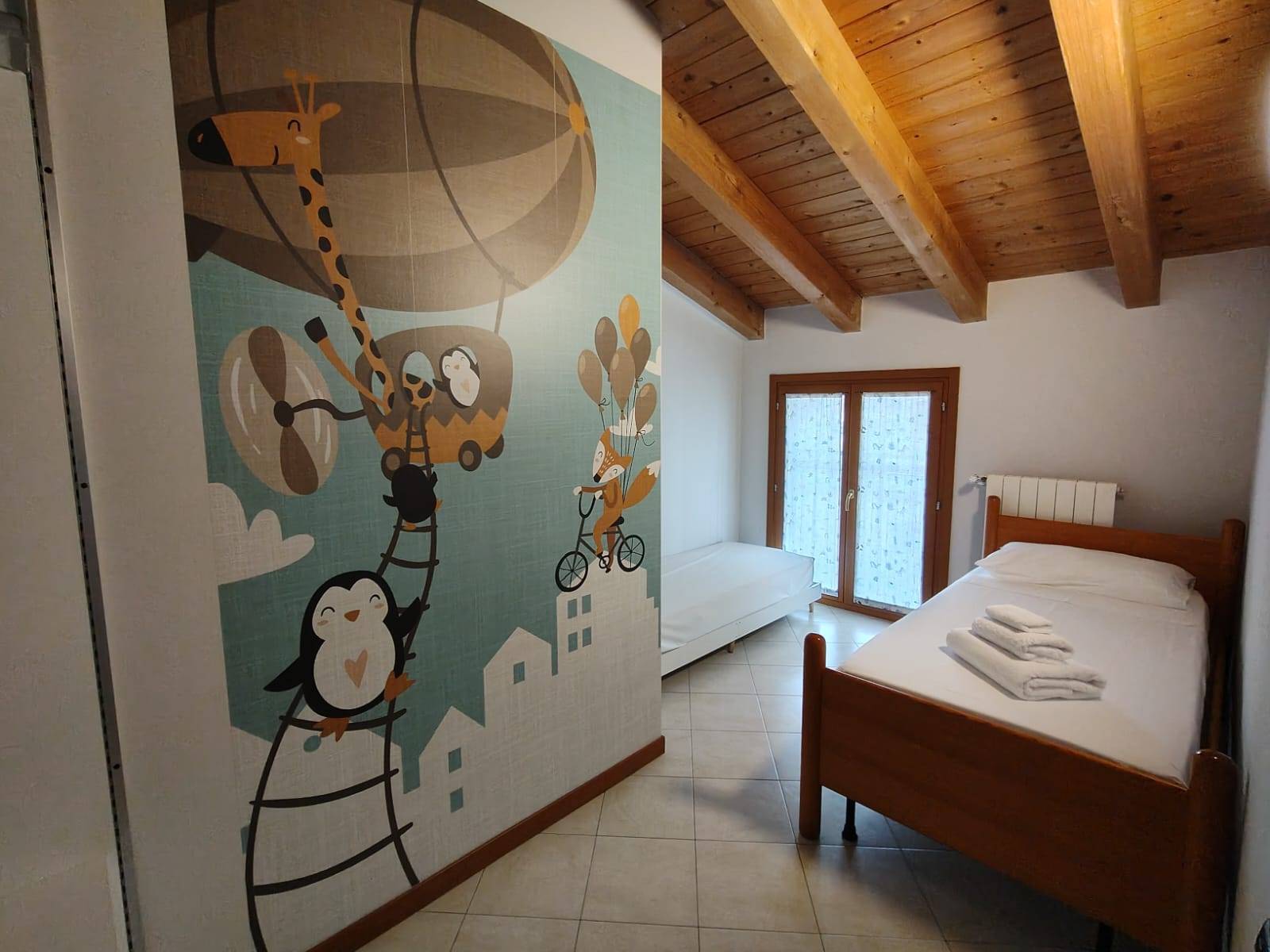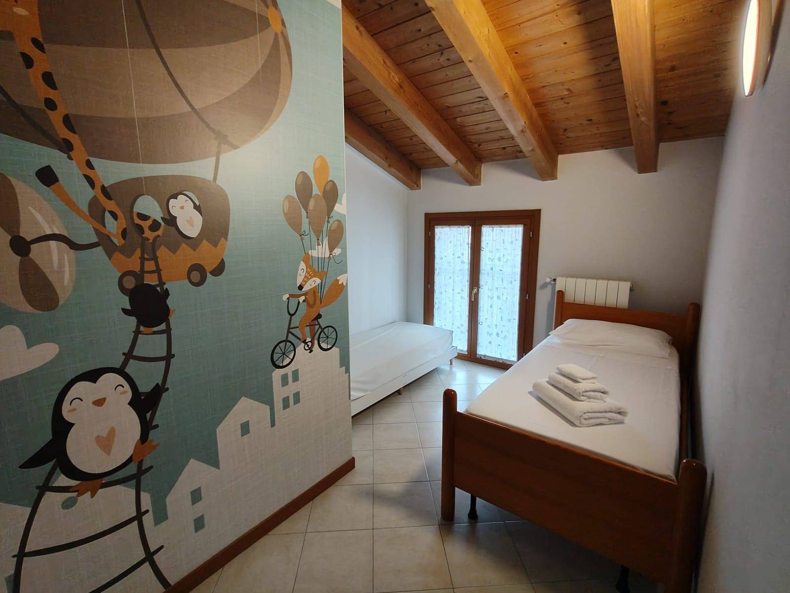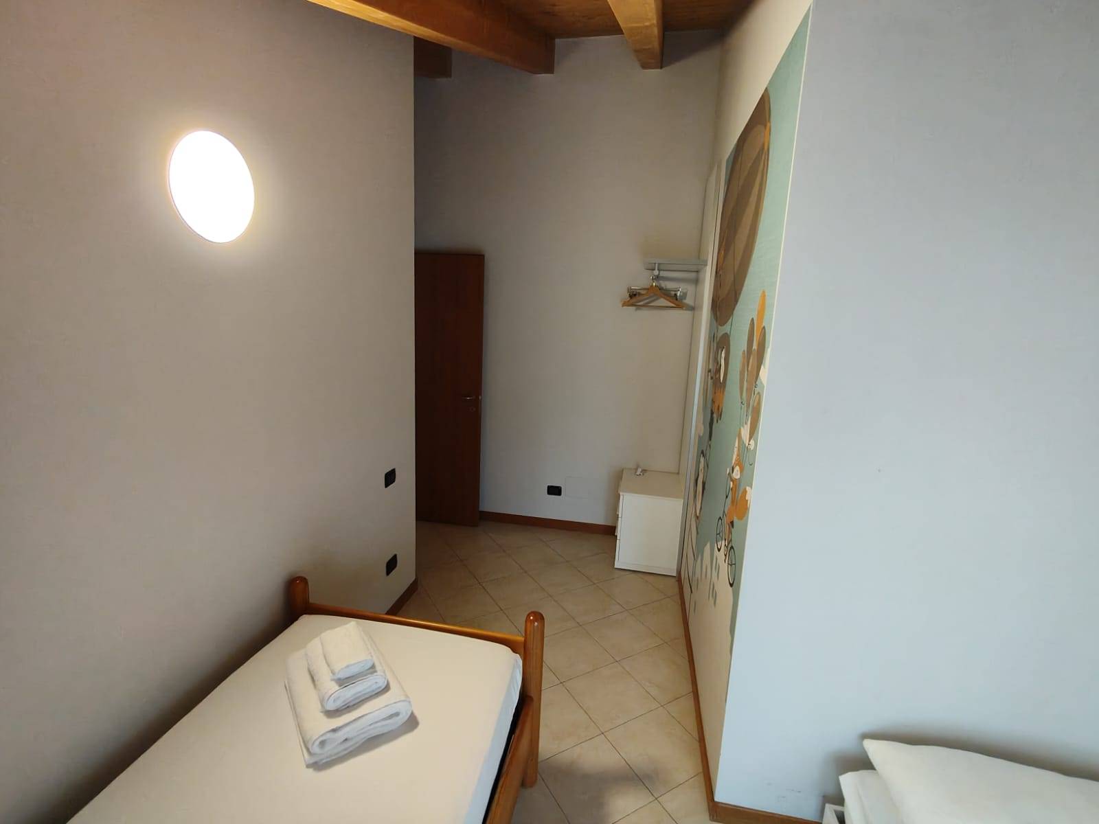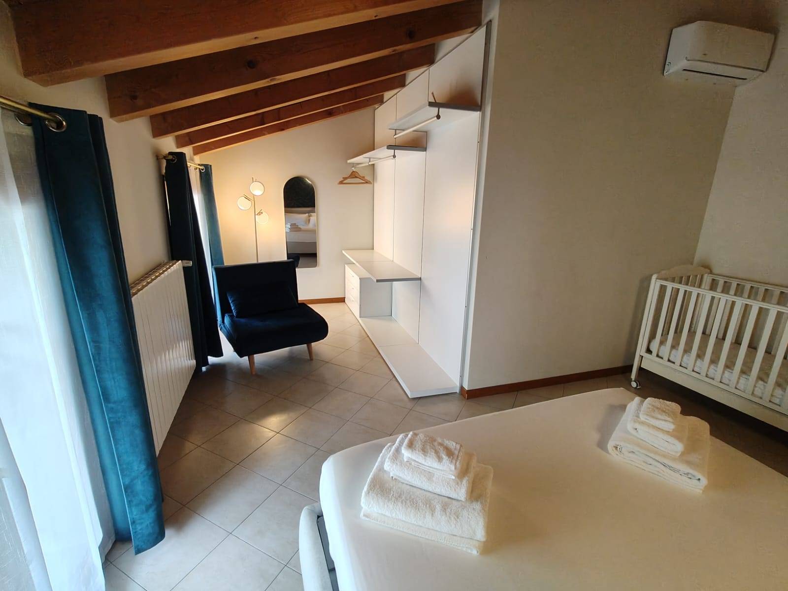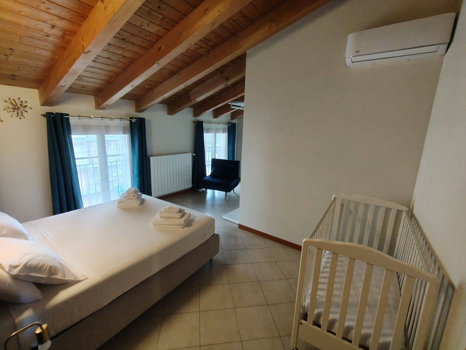 bagno finestrato con vasca/doccia, cameretta con piccola cabina armadio, e camera matrimoniale molto luminosa.