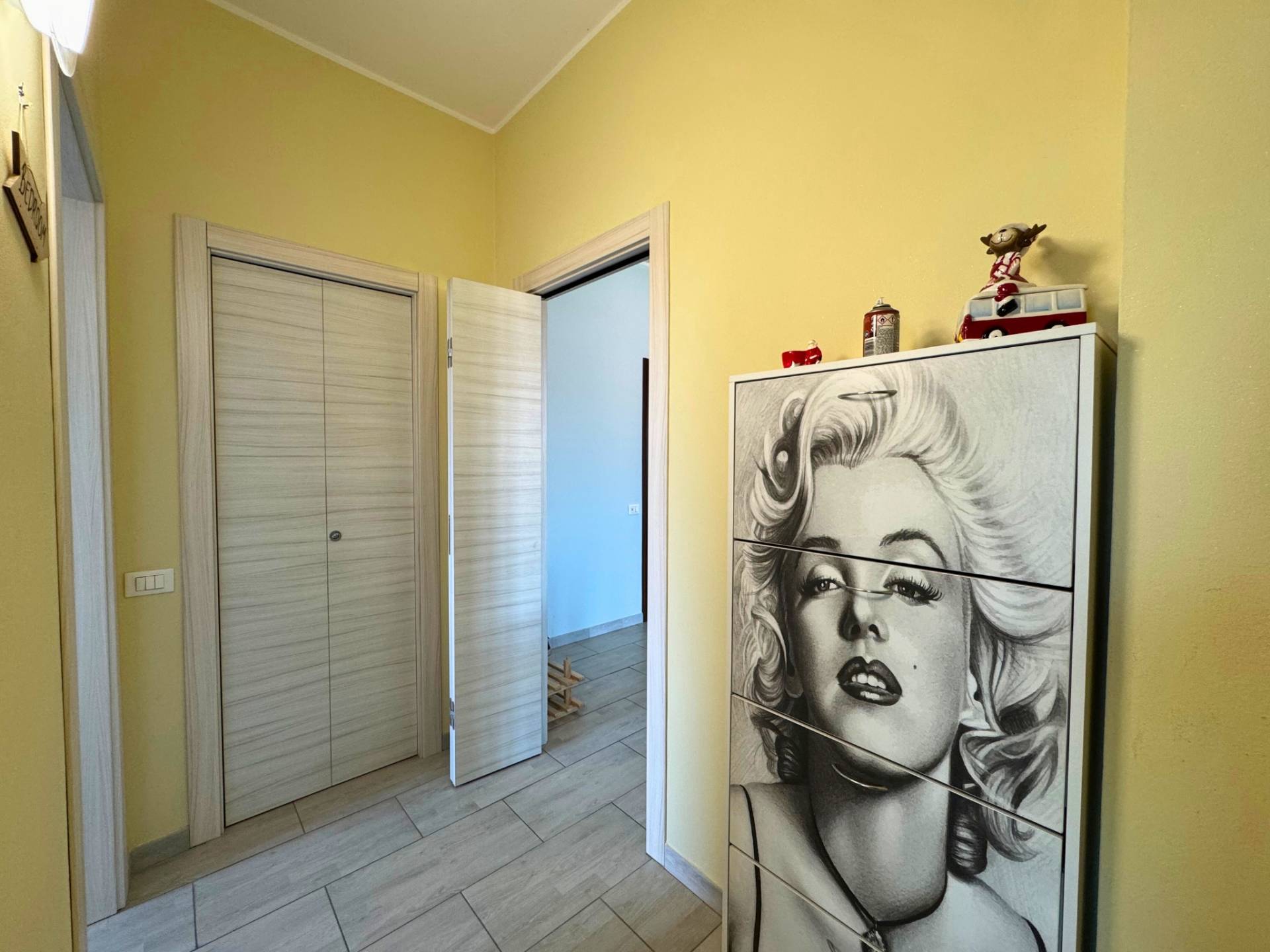 L'appartamento è stato recentemente ristrutturato e si presenta con un pavimento in gres porcellanato, serramenti in doppio vetro bicolor in pvc, zanzariere, impianto elettrico nuovo con placchette laccate bianche, cassettoni delle tapparelle nuovi, portoncino blindato e porte interne nuove in abbinamento con i serramenti.