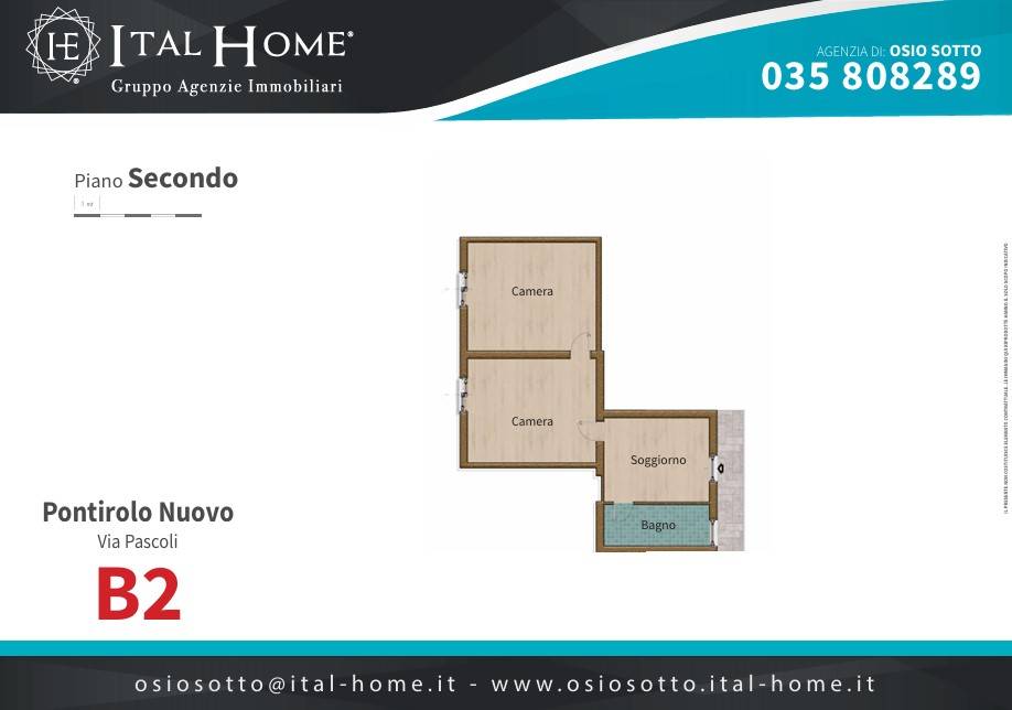 L'immobile è composto da ingresso su cucina/soggiorno con disimpegno e bagno con doccia, due ampie camere da letto matrimoniale;