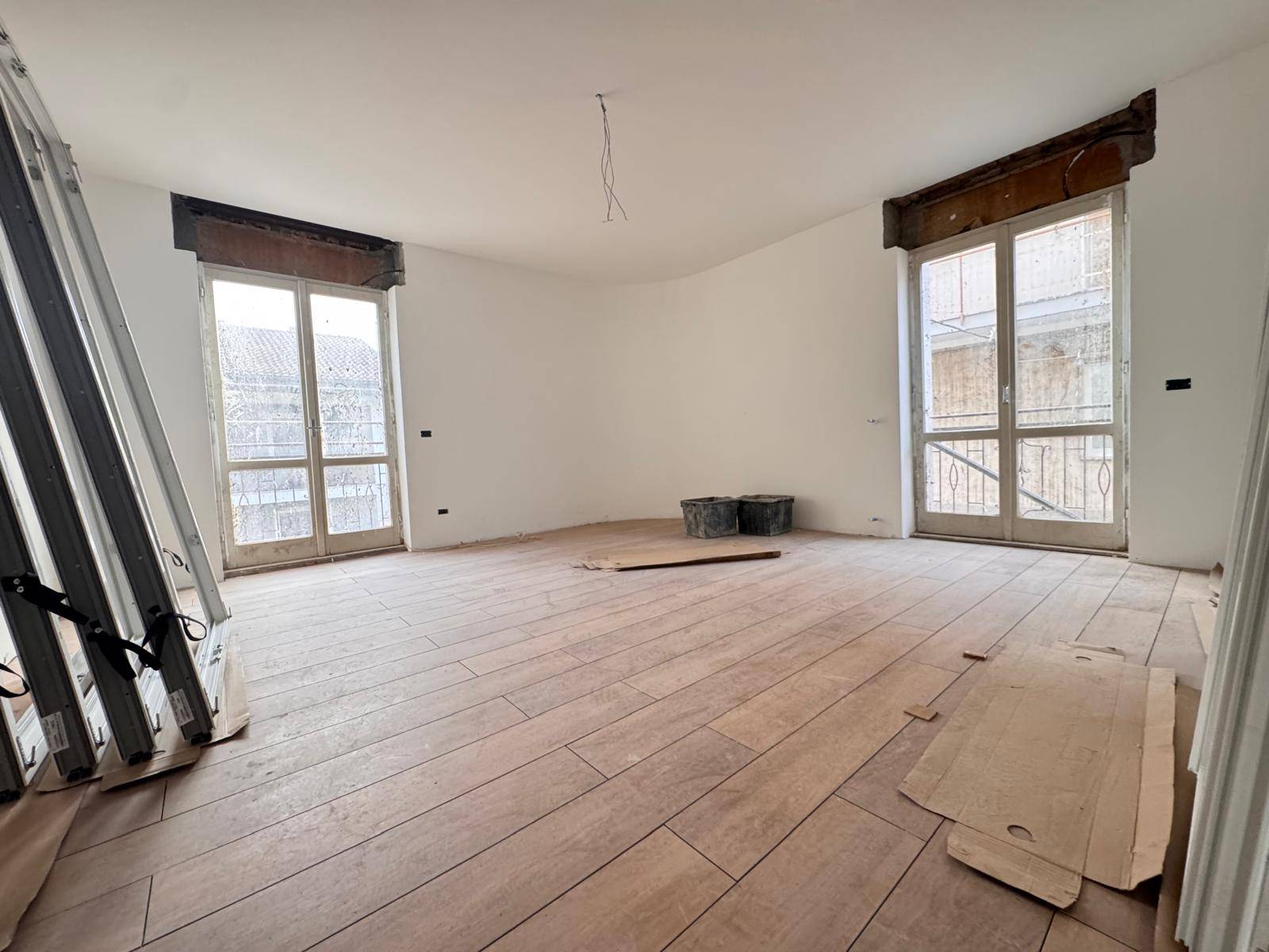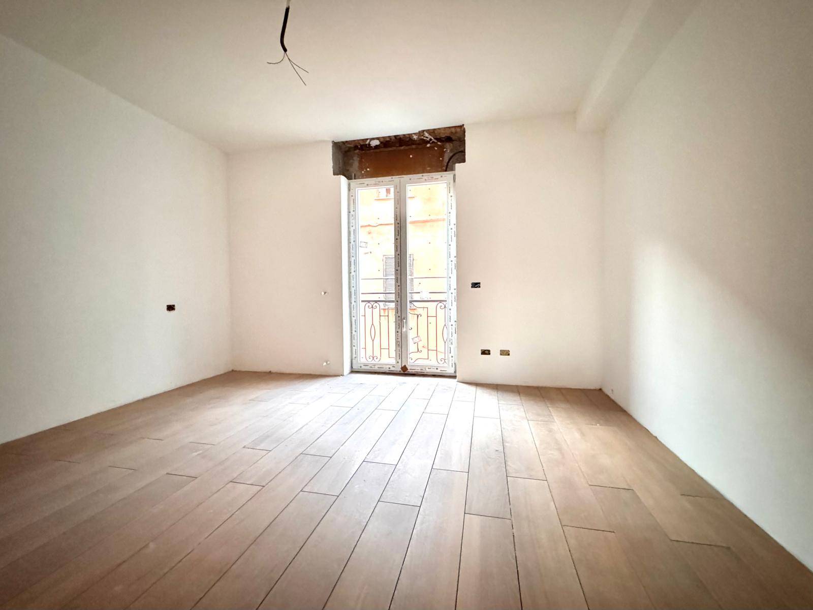 Appartamento trilocale completamente ristrutturato a nuovo, situato in centro storico e composto da ingresso, soggiorno con cucina a vista, due camere da letto e un bagno.