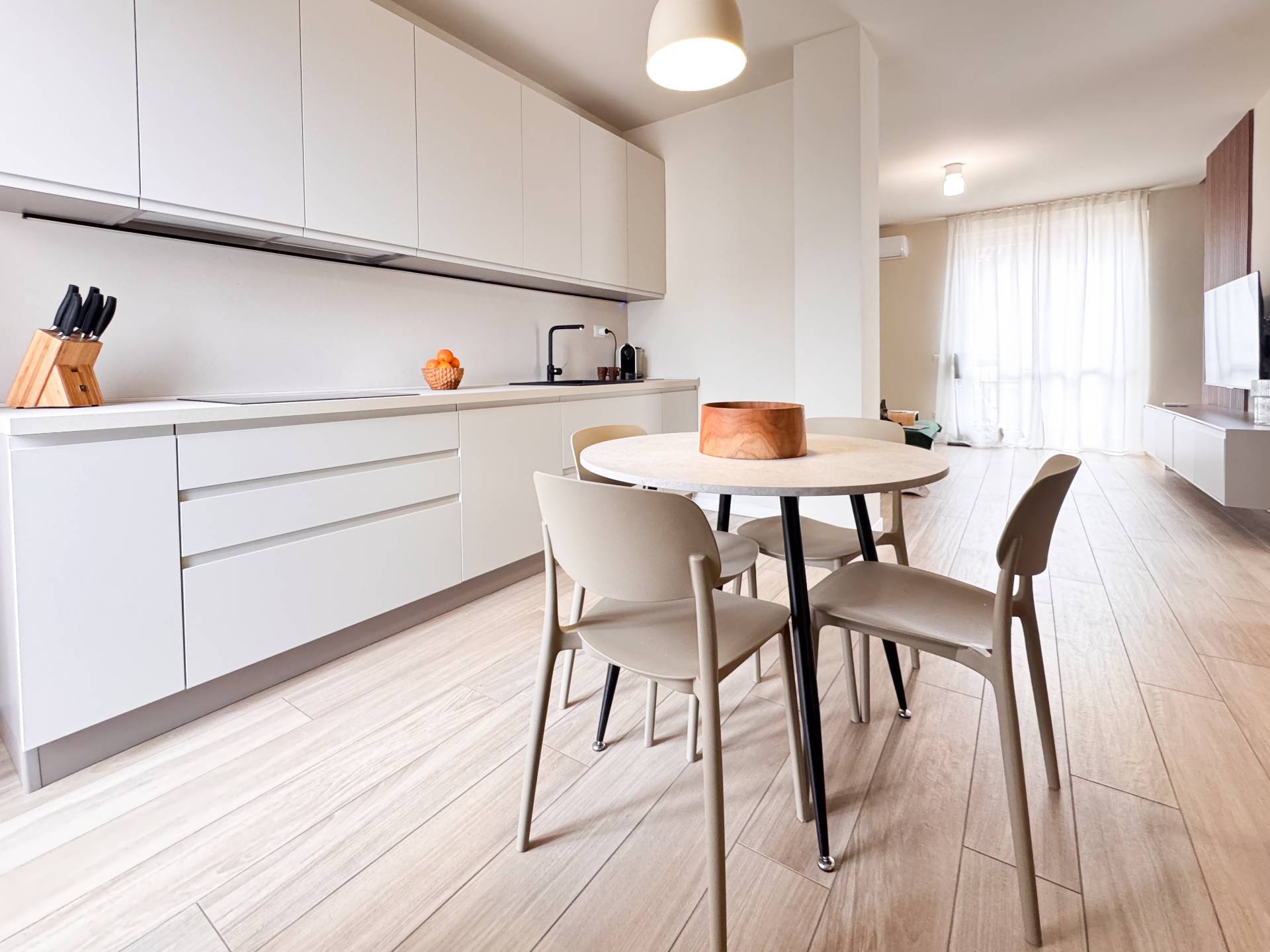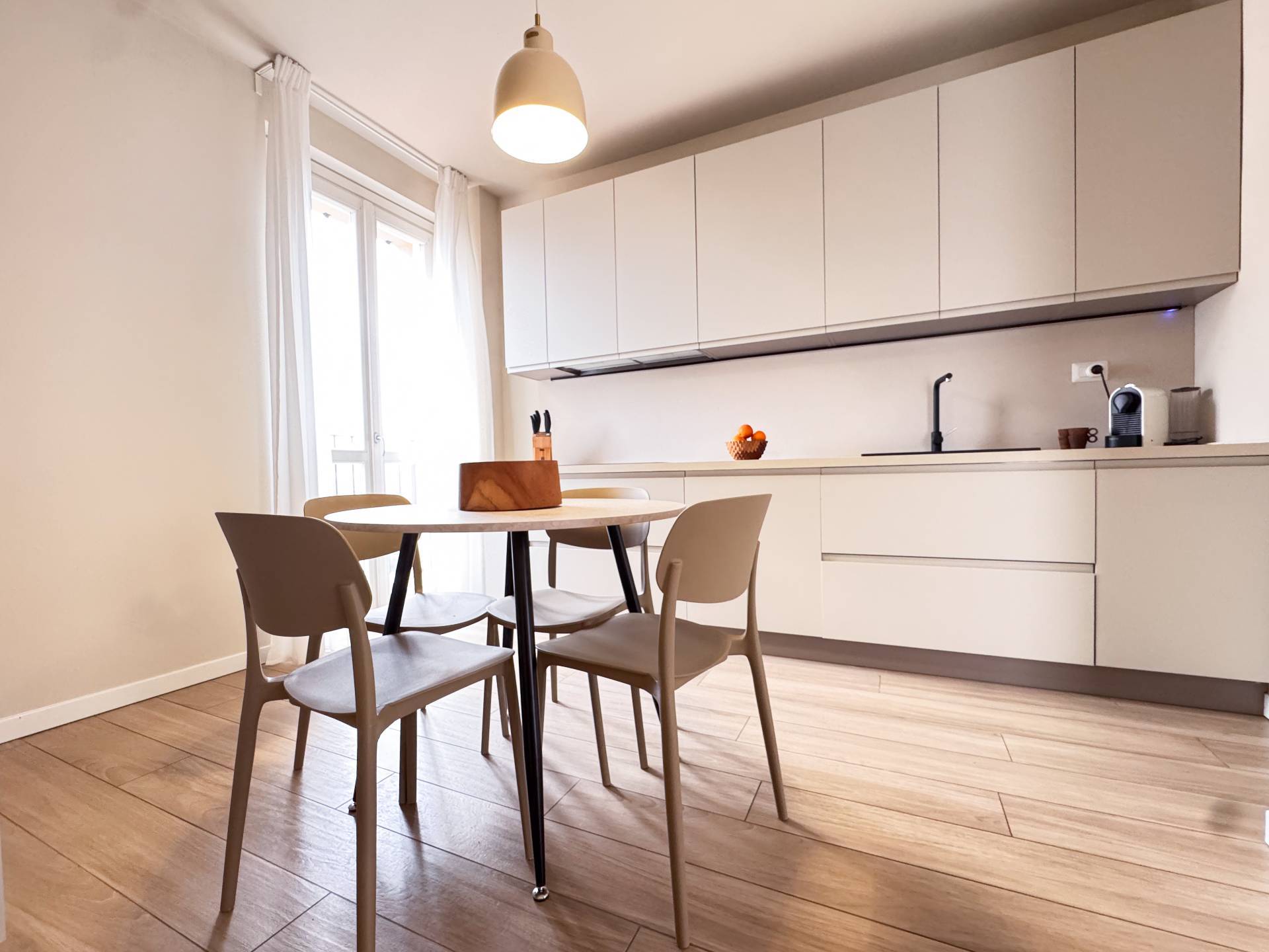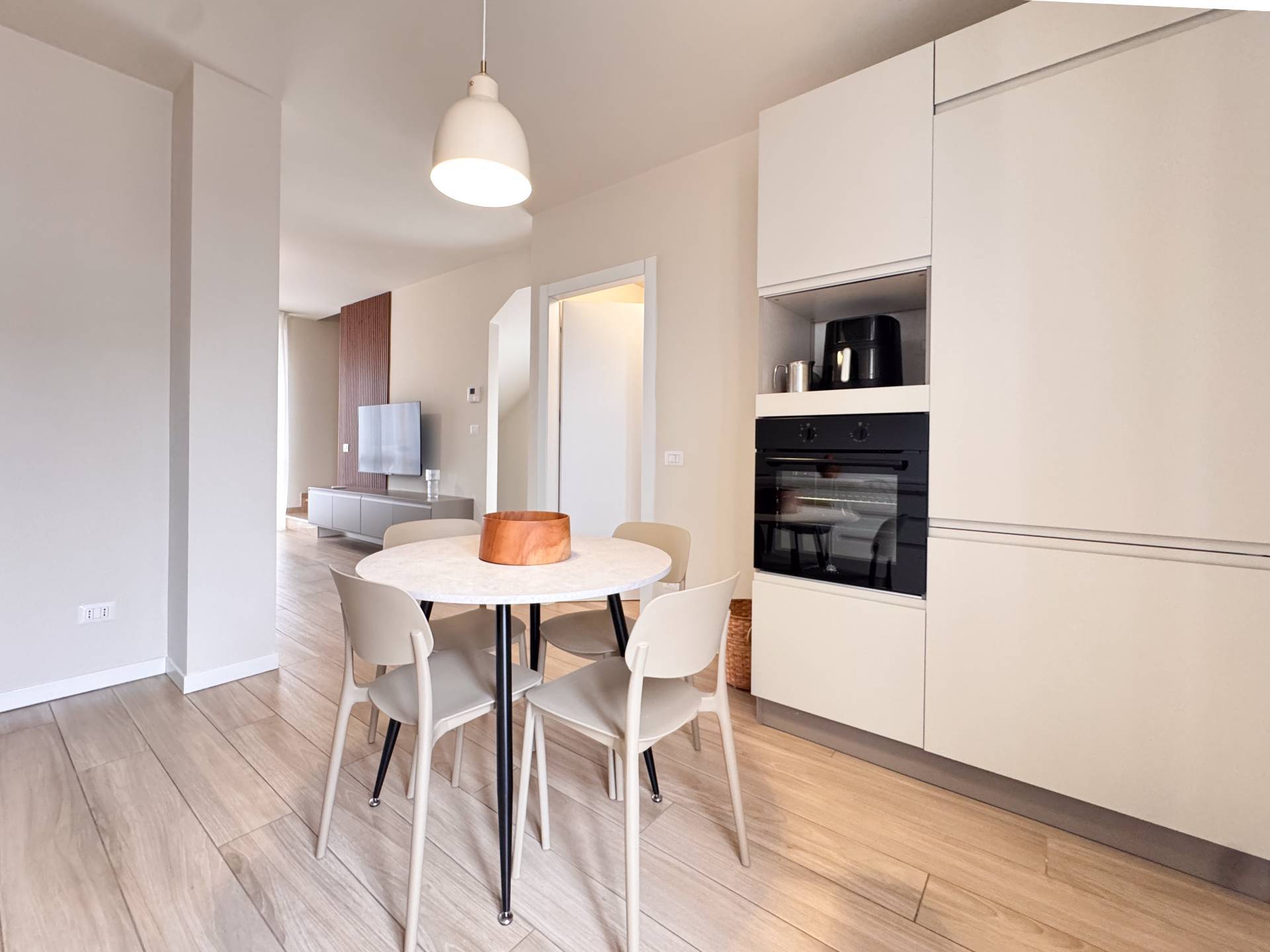 L'appartamento è stato completamente ristrutturato e si presenta in eccellenti condizioni, caratterizzato da finiture moderne e materiali di alta qualità. Gli ambienti sono studiati per offrire funzionalità e comfort, con una distribuzione razionale degli spazi che garantisce luminosità e una piacevole sensazione di ampiezza in ogni locale. La soluzione si presta perfettamente a una famiglia di tre persone o a una coppia che desideri spazi ben organizzati e vivibili.