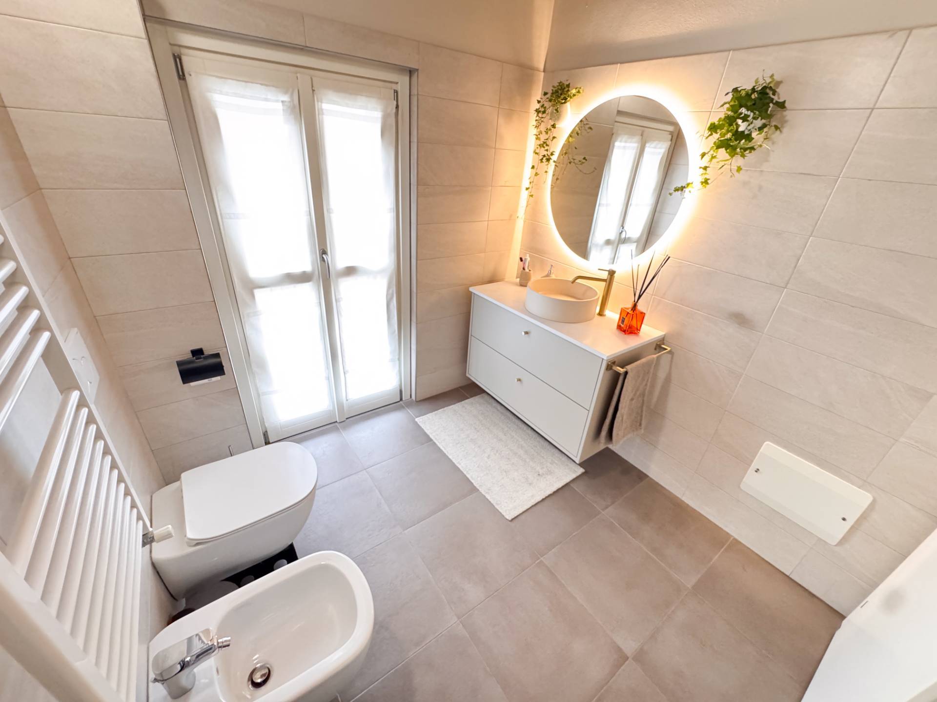 Trilocale ristrutturato con giardino privato, terrazzo e doppio garage