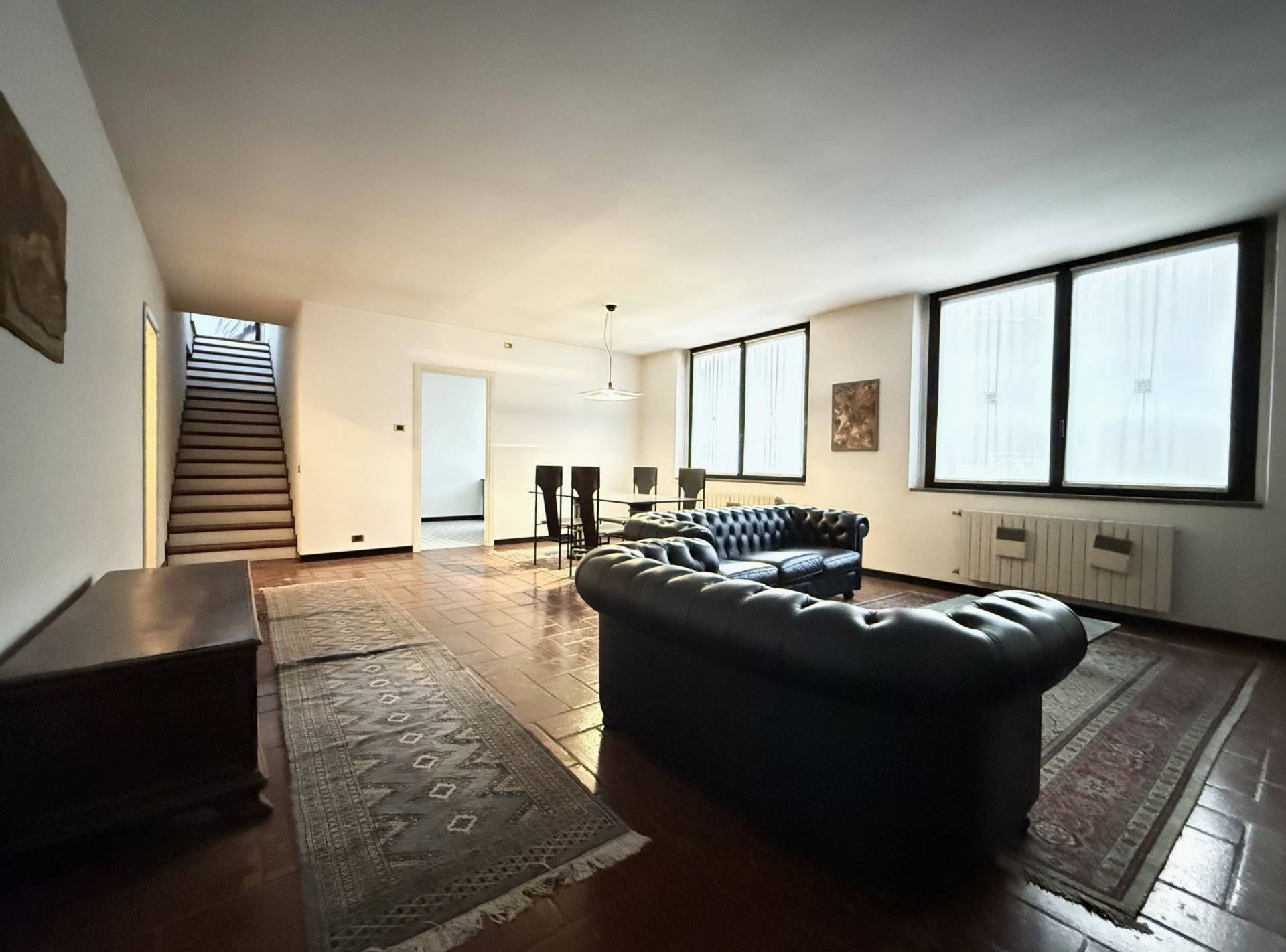 Appartamento di grande metratura composto da salone con cucina abitabile, disimpegno notte che accede alla camera da letto matrimoniale e bagno; tramite comoda scala accediamo al piano superiore con la seconda camera da letto, secondo bagno, solaio e grande terrazzo.